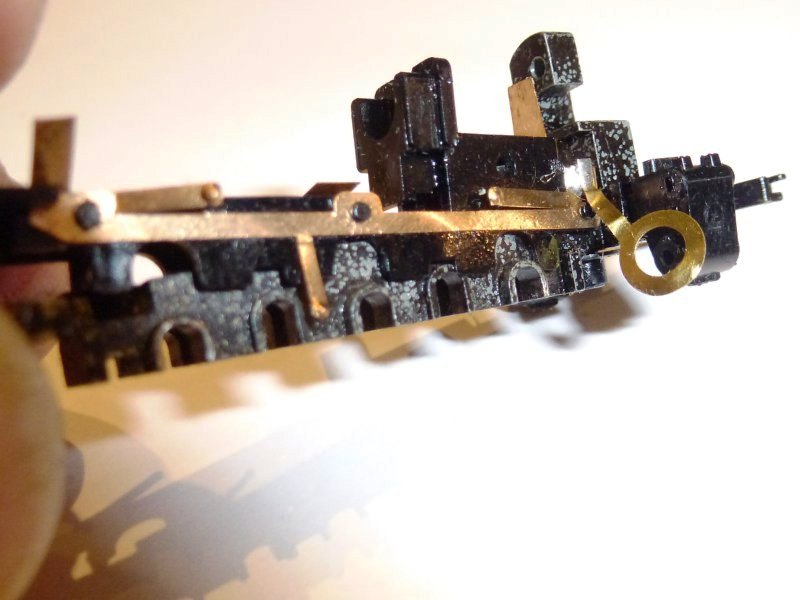 Note how the plastic moulding dovetails into the metal casting. The plastic chassis has to be lifted rear first. But read on .... |
