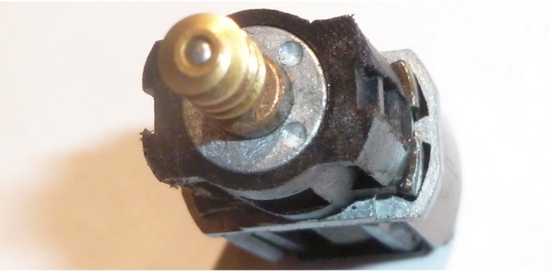 Close up of the connections to the motor 2. Note the correct orientation of the motor. The two indents shown in the picture here should be uppermost. |