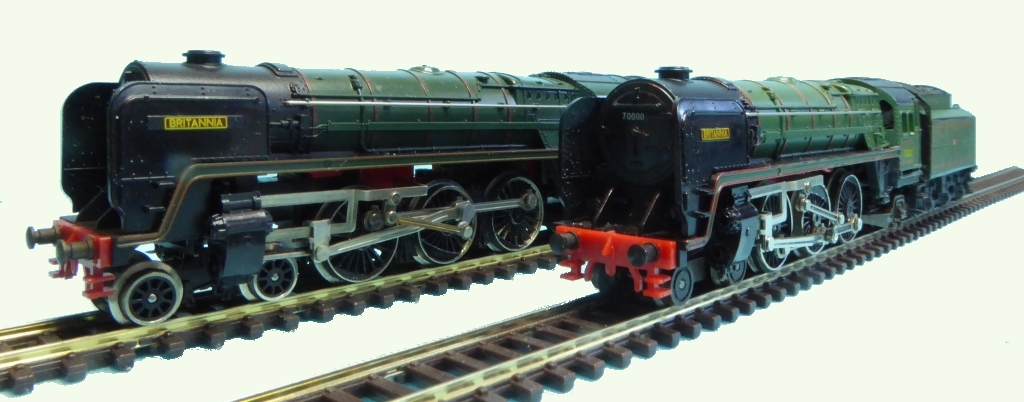 N203 A New Britannia - 51-2037-10 Finally for 1980, a mystery! At some point, the ‘Britannia’ had a complete facelift and adopted the same chassis, wheels, axles, and gearing that was used for the ‘Mallard’. It was also painted using the correct Brunswick Green paint. The main crank pin was now the plastic version with the square peg to fit into the square hole in the centre wheel, though the tiny stamped metal sliding crosshead remained. It seems that for a while, although Hornby kept the same N203 code number for the new Britaania, Minitrix distinguished it from the original version with a slightly different number: 51-2037-10. I have a data sheet for the Mallard that I purchased as new in April 1980 that also applies to ‘Britannia’, which has the new Britannia number at the top. The data sheet is dated Feb 1980, and the Minitrix 1981 catalogue also shows the new number. Confusingly both the Minitrix and Hornby catalogues illustrate the new model with a photo of the old model ! The difference is easy to spot in the photos - the old version has the smaller solid disc front bogey wheels - and these photos remained in new catalogues catalogues for at least the next two years (I have the 82/83 catlogue still showing the picture of the old Britannia). The 1985 catalog shows the new Boadicea image with captions indicating the two vaieties. Presumably, there was plenty of stock of the older models around, and publishing the existence of a much newer, brighter model would devalue the old stock. I am guessing. So the precise date of the change from the old to new chassis remains an enigma to me at present. I am inclined to think early 1980, but why they would paint my 1980 ‘Mallard’ in the horrible light green colour in 1980 when my new style ‘Britannia’ received the nicer dark green shade does not seem to fit with this. In fact, my new chassis dark green ‘Britannia’ was bought in the green/yellow Minitrix box with a data sheet dated September 1982. The enigma is probably not difficult to solve. Shops would simply have carried on selling whatever Britannia that they had in stock, and the new variety would find its way onto the shelves in due course. Not a great deal of effort would have gone into manufacturing this new variation. The new style chassis was already in use for the Mallard and for the German Schnellzug-Dampflok BR01 (12076). The same body fitted. Everything apart from the valve gear - which required a plastic crankpin to be fitted instead of the metal splined crankpin. Consequently there would be no need to manufacture the wheels, cogs, chassis etc for the newer style Britannia. That is a big saving.