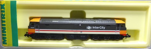 In 1987-88, Minitrix produced two further variations of the Class 47 - A British Rail Railfreight Grey 51-2024-00 and A British Rail Intercity model number 51-2025-00.  These were never marketed by Hornby and should only appear in the hard plastic cases with the green & yellow Minitrix paper inserts.