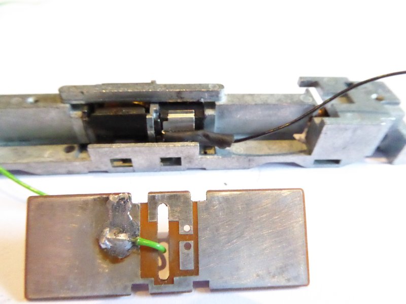 Another shot of the motor, the motor earth wire and the green +ve track feed