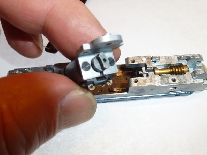 motor is raised slightly in the photo - the copper contact strips