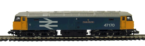 It was a revelation.  It is much slimmer than the other Minitrix diesel offering - the class 27 and class 42, and is more in keeping with the modern Farish offerings for scale.  The motor is much smoother than the Class 27 - possibly due to the more secure motor mounting - it clips into place and each end of the axle is mounted in a nylon bearing.  It is possible to tune out the raspy nature of the class 27 motors by slackening the mounts and repositioning the motor slightly.  There is no need for that with this model, although it is still noisier than the Farish Class 66.  Most noticeable is that this Class 47 runs much more slowly than the earlier Minitrix models such as the Class 27, the Scotsman, Gresley, Britannia and even the little 2MT DockTank.