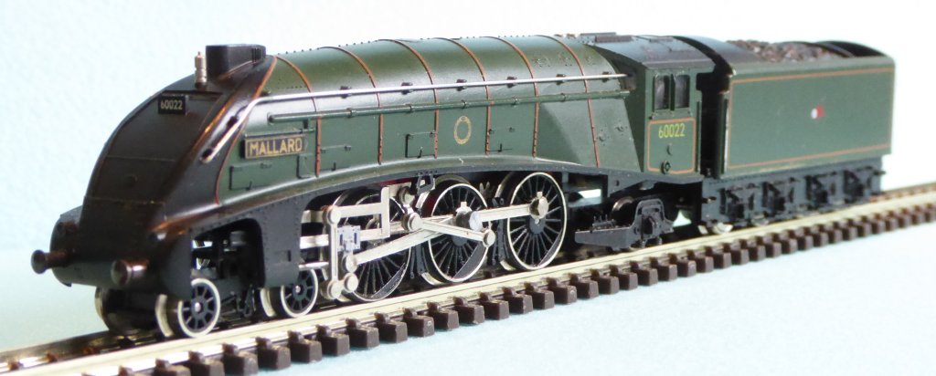 The Minitrix Mallard is the centre piece of many an N-gauge collection. Superbly engineered and runs beautifully when it is in good trim.  Highly geared, it was was always fast and always with electrical pickup on loco and tender it is never baulked by track joints or insulated points.
