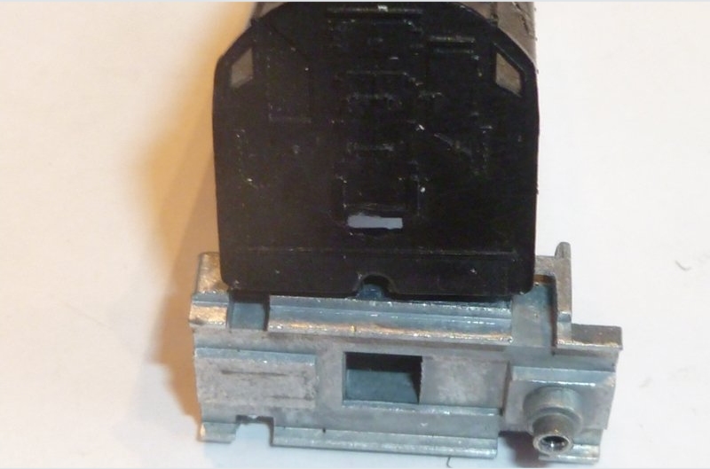 The tender provides four more electrical pickups - a positive and negative on both the front and rear axle. The tender body is a push and click fit onto the chassis - remove it by inserting a small screwdriver into the horizontal slot where the coal hatch is. Apply pressure in a slightly downward direction and give the screwdriver a gentle twist to raise the front of the body from the chassis. The two catches at the rear can be released once the front is raised . |