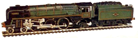 The Minitrix Britannia does appear in the Trix 1971/72 catalogue with a picture which more closely resembles the loco that was finally produced. The Britannia was Hornby Minitrix's only 4-6-2 loco until the Mallard came along in 1980. The early Britannia had distinctive disc bogey wheels and had metal sliding components on the valve gear and had a metal crank pin on the centre drive wheel. Although the Mallard and the early Britannia look very similar to each other, under the hood, they are quite different. With the newly designed Mallard, the Britannia adopted the same centre chassis, axle and wheel set, bogies and the plastic square peg crank pin. The technical data sheet that came with my brand new Mallard in 1980 also lists the New style Britannia with a variation of its original number ie 51-2037-10. It does not show the Boadicea, Gresley or the two Flying Scotsmen. So there are two versions of the Hornby Minitrix Britannia, which were also sold pre-Hornby and post Hornby
